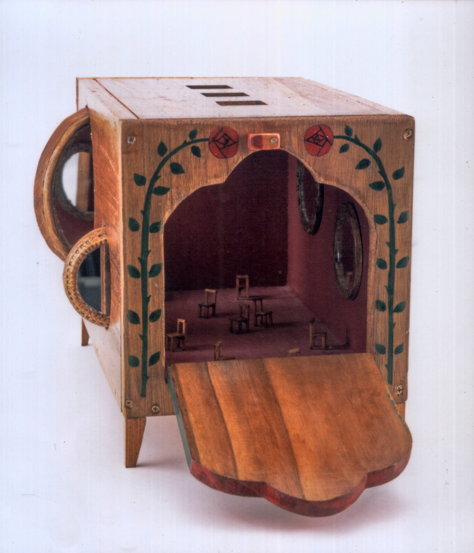 木、アクリル絵具、ニス、ベルベット、鏡